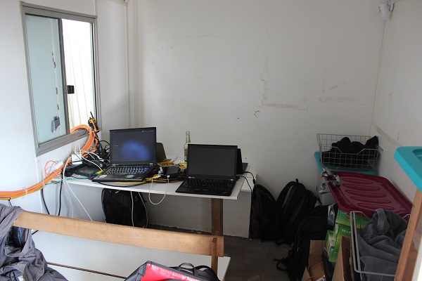 Genauso wie letztes Jahr wurde uns durch LWLCom und mit Hilfe der Digineo GmbH eine 1GBit-Glasfaserverbindung zur Verfügung gestellt. Die Glasfaser wurde vom Schacht um etwa 250m in unseren Bauwagen verlängert. Dort war sie mit einen MikroTik Cloud Core Router CCR1009-8G-1S-1S+ verbunden. Durch den Mikrotik Router wurde der IPv4 sowie IPv6 Uplink terminiert und das IPv4-NAT + IPv6-Routing übernommen. IPv4 und IPv6-Adressen für die Clients, sowie ein DNS-Server wurden auf einem kleinen Virtualisierungsserver bereitgestellt. Die Anbindung der verteilen TP-Link Switche (TL-SG2210P) per Glasfaser wurde mittels zweier Cisco 3750 mit jeweils 4 SFP-Ports realisiert.