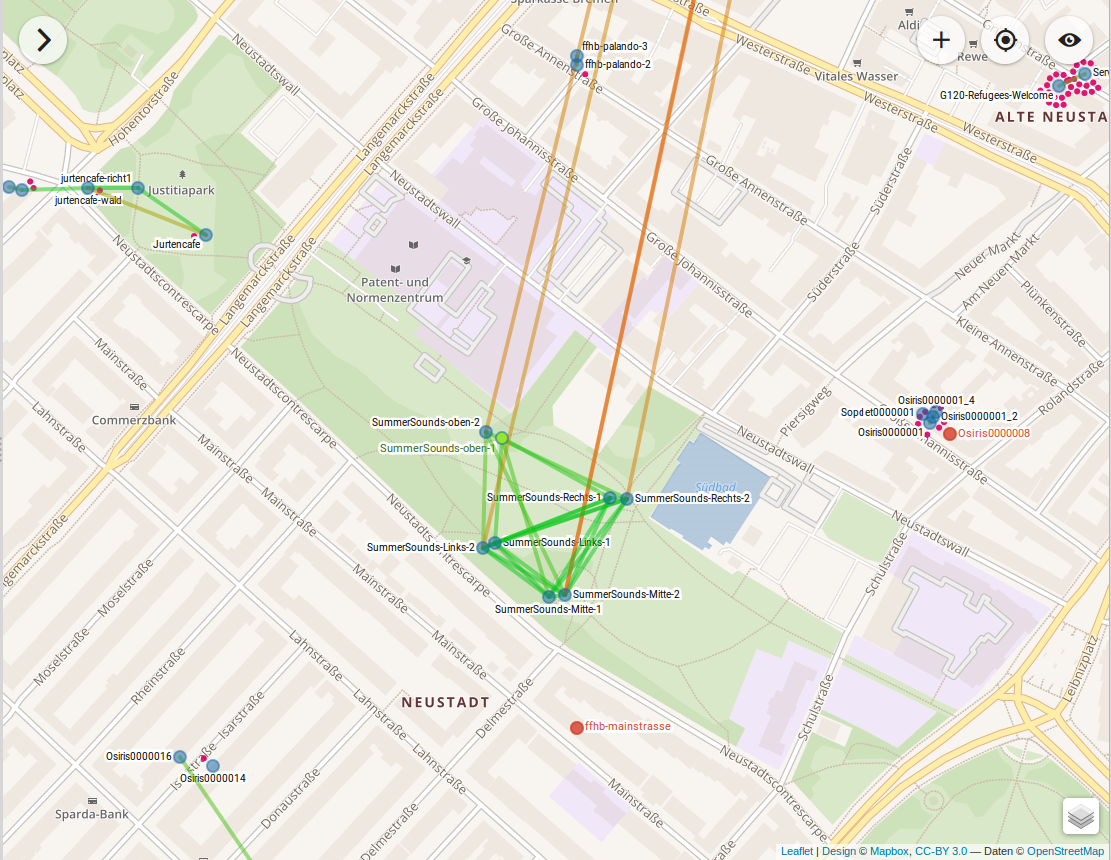Nach dem Überseetörn, dem Stadtteilfest in Walle und der Breminale versorgt die Freifunk-Initiative nun als nächstes das SummerSounds-Festival. Die Outdoor-Boxen stehen schon in den Startlöchern, sogar die Koordinaten wurden schon eingetragen! (siehe Bild unten)