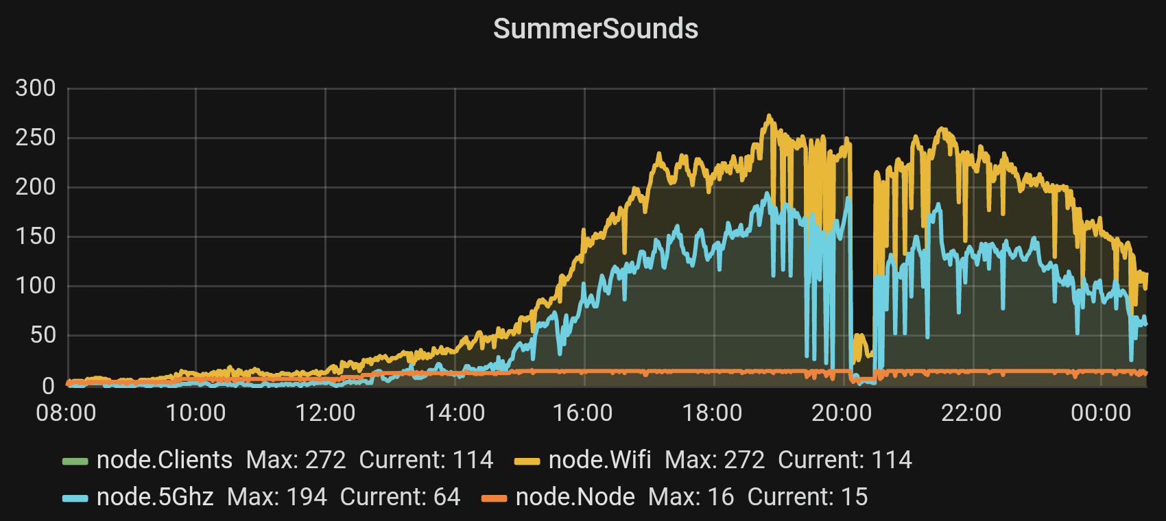 Über den Tag verteilt waren zwischen 50 und 250 Clients im Netz, der Peak lag bei 272 Clients.