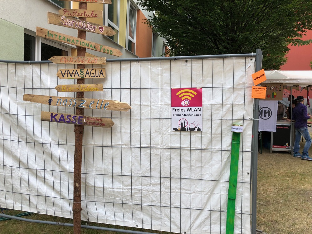 Das von Studierenden organisierte Vorstraßen-Sommerfest wurde dieses Jahr wieder mit kostenlosem Freifunk versorgt. Das Open Air Festival findet seit über 40 Jahren auf dem Gelände des Studentenwohnheims an der Vorstraße statt. Am Freitag Morgen, 8. Juni, ging der Aufbau für drei ehrenamtliche Freifunker los. Um Freifunk-WLAN auf dem Gelände zu verteilen, wurden wie im letzten Jahr Outdoorboxen benutzt. Doch auch die schönsten Outdoorboxen hätten ohne die super freundlichen Bewohner des Wohnheims nichts gebracht: Sieben Bewohnerinnen und Bewohner haben uns ohne langes Gerede an ihre Internetanschlüsse gelassen. Damit haben sie den Besuchern überhaupt erst ermöglicht, ins Internet zu kommen.